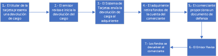 Es un proceso gestionado por el banco emisor de la tarjeta y puede resultar en la devolución del dinero al cliente, mientras que el comerciante pierde los fondos de la transacción y puede enfrentar cargos adicionales.