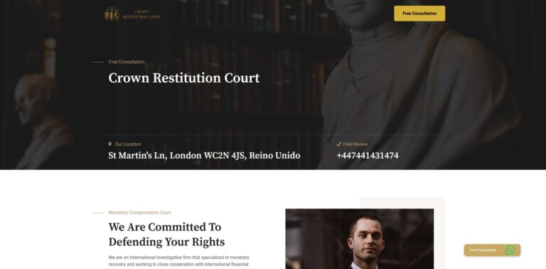 Crown Restitution Court se presenta como un bufete de abogados que afirma poder ayudarte a recuperar fondos perdidos a través de estafas, pero NO RECOMENDAMOS sus servicios por varias razones clave: