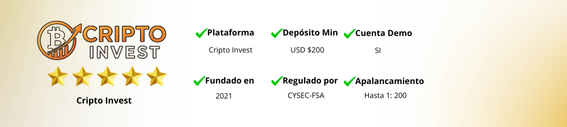 Regulado por las autoridades financieras más estrictas, Cripto-Invest garantiza una experiencia de trading con los más altos estándares de protección y confiabilidad. Su plataforma intuitiva y su enfoque en la seguridad digital aseguran que tus fondos y datos personales estén siempre protegidos. Además, pone a tu disposición herramientas avanzadas que optimizan cada operación, permitiéndote maximizar tus rendimientos con facilidad.